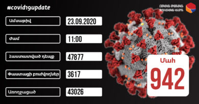 ԱվելինԻնչպես տեղեկացնում է ՀՀ ԱՆ հիվանդությունների վերահսկման և կանխարգելման ազգային կենտրոնը, մեկ օրում կորոնավիրուսի հետևանքով մահացել է 1 քաղաքացի, մահացածների