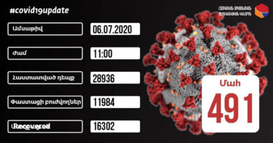 Հայաստանում հուլիսի 11-ի դրությամբ հաստատվել է կորոնավիրուսով վարակման 489 նոր դեպք, վարակվածների ընդհանուր թիվը հասել է 31 392-ի: Ինչպես տեղեկացնում