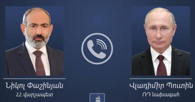 ԱվելինՏեղի է ունեցել Նիկոլ Փաշինյանի հեռախոսազրույցը ՌԴ նախագահ Վլադիմիր Պուտինի հետ։ «ՌԴ նախագահը ՀՀ վարչապետին տեղեկացրել է նախորդ շաբաթ Ադրբեջան կատարած