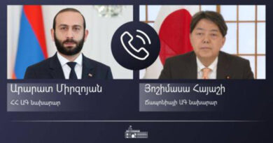 ԱվելինՀունվարի 31-ին Հայաստանի ԱԳ նախարար Արարատ Միրզոյանը հեռախոսազրույց է ունեցել Ճապոնիայի ԱԳ նախարար Յոշիմասա Հայաշիի հետ: Այս մասին հայտնում են