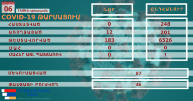 ԱվելինՀայաստանում օգոստոսի 6-ի դրությամբ հաստատվել է կորոնավիրուսով վարակման 233 նոր դեպք, վարակվածների ընդհանուր թիվը հասել է 39819-ի: Ինչպես տեղեկացնում է